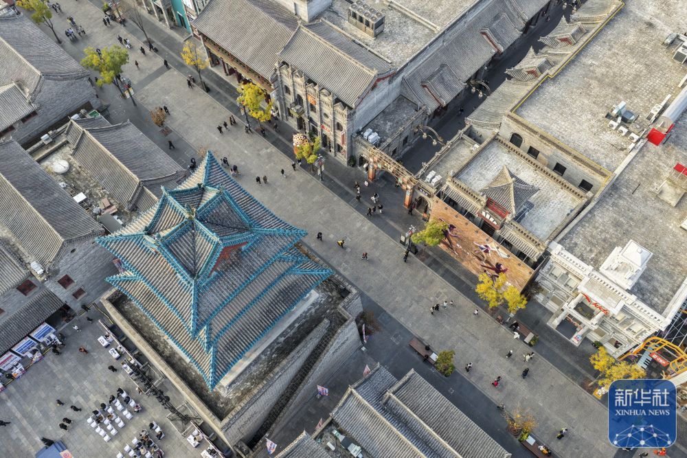 "新華社發(fā)(劉亮亮 攝)↑ 山西省呂梁市臨縣磧口古鎮(zhèn)一角(10月29日攝,無人機照片)。" 磧口新生 古鎮(zhèn)新“味”